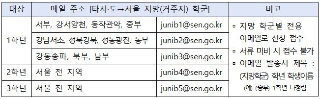 - (타시·도→서울) 지망(거주지) 학군별 이메일로 신청